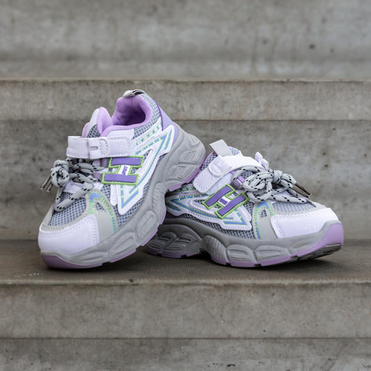 • Zijaanzicht van stijlvolle paarse kindersneaker Splashz Purple voor meisjes